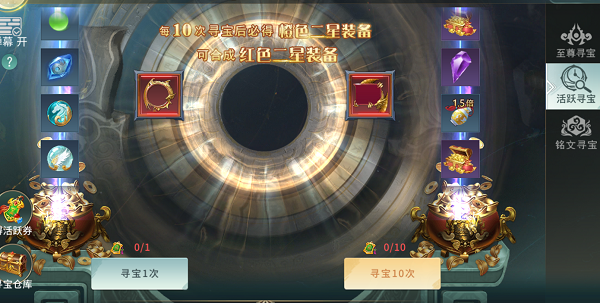 就是上面截图所示,这个寻宝名为活跃寻宝,顾名思义是用活跃券来寻宝的,活跃从何而来呢?